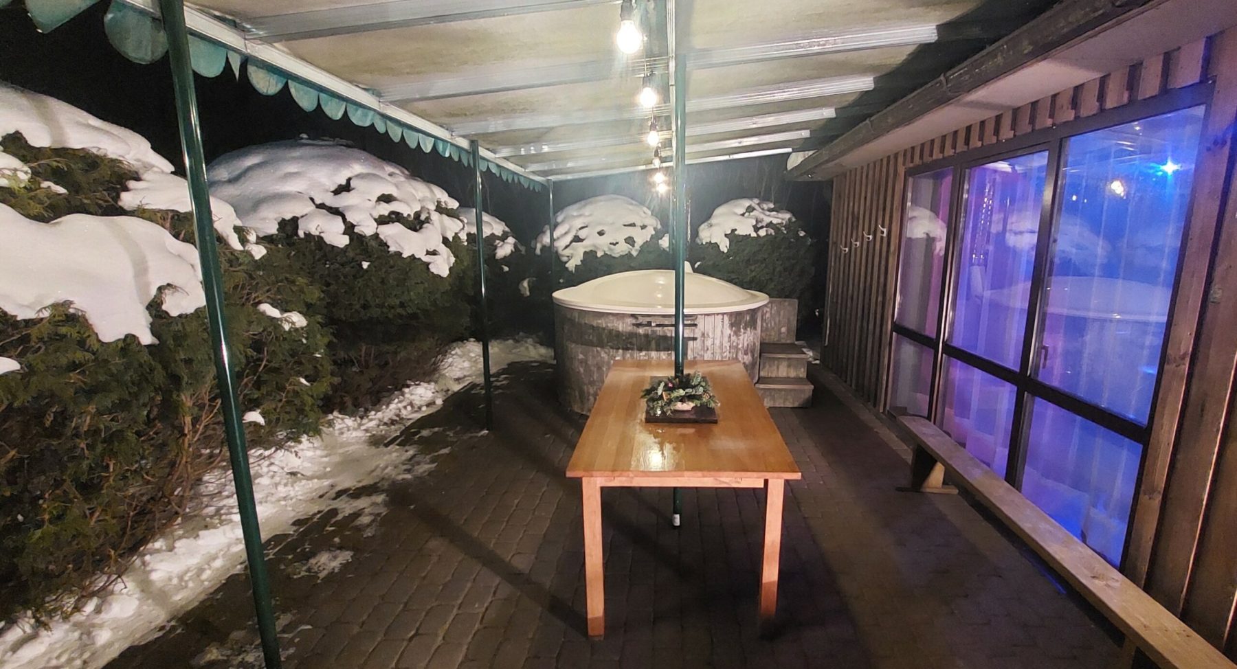 Liela un karsta ar malku kurināma pirts, auksts baseins, bet ārpusē uz terases karstā baļļa. Virtuve svinību galdu servēšanai, trauku un galdautu noma.